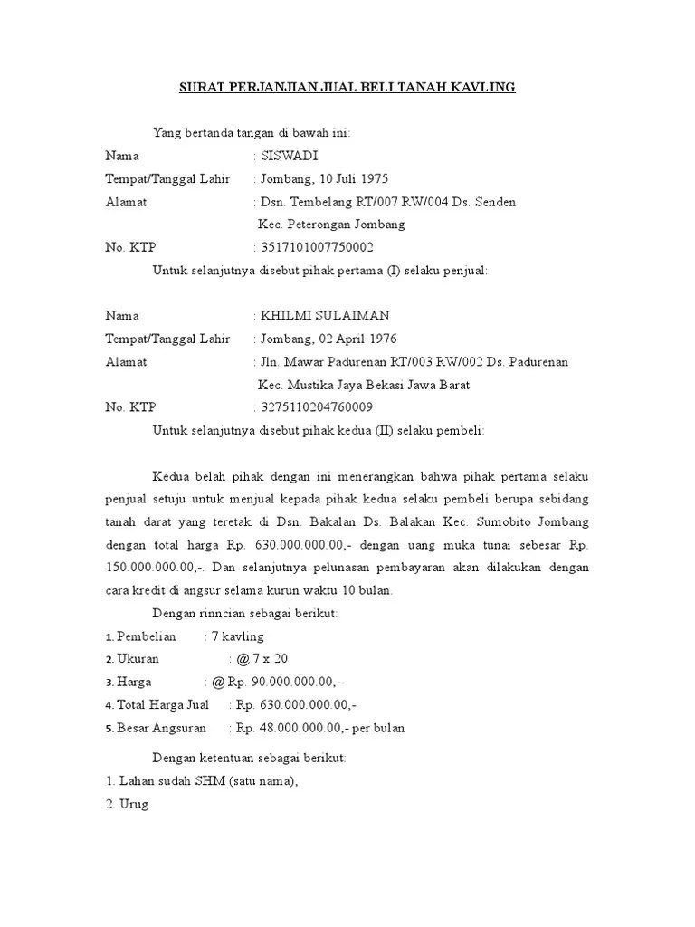 Surat perjanjian jual beli adalah surat perjanjian antara penjual dan pembeli atas jual beli objek atau tanah. Surat perjanjian jual beli tanah ini, dibuat oleh pihak penjual dan pembeli untuk menjelaskan hak serta kewajiban yang tidak boleh dilanggar . Anda memerlukan contoh surat perjanjian jual beli tanah? Hal ini menuntut pembeli tanah untuk memiliki surat keterangan jual beli yang sah. Surat perjanjian jual beli tanah di indonesia berguna bagi yang penjual dan pembeli.