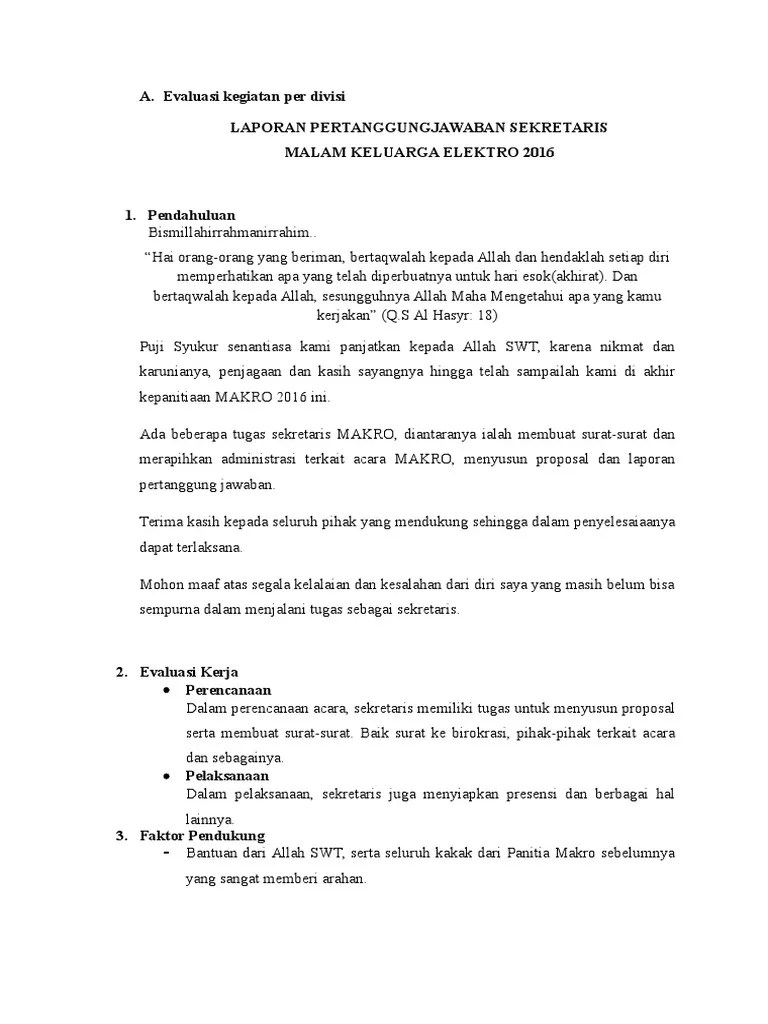 Laporan Kegiatan Evaluasi - Contoh Laporan Pertanggungjawaban Lpj Kegiatan Terbaik / Latar belakang era globalisasi menuntut pengelolaan .